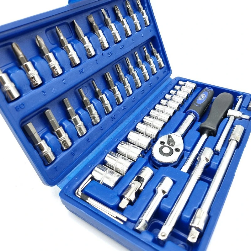 اگر قصد کاملکردن ابزارهای خود را دارید، میتوانید روی محصول فوق حساب کنید. این مجموعه 46عددی و شامل انواع سریهای پیچگوشتی، بکس و آچار اتصال به آنهاست. با دراختیارداشتن این محصول میتوانید بسیاری از پیچ و مهرهها را باز و بسته کنید. شرکت باس برای این مجموعهی 46عددی، سری پیچگوشتی دوسو، چهارسو، ستارهای و آلنی و 13 سری بکس با درایو 1/4 اینچ در سایزهای 4 تا 14 میلیمتر در نظر گرفته است. در کنار این سریهای مختلف، دستهی آچار بکس جغجغهای، دستهی پیچگوشتی، افزایشدهندهی طول و آچار T نیز مشاهده میشود. این مجموعه درون جعبهای پلاستیکی عرضه شده است. وزن کل این مجموعه 1.2 کیلوگرم و جابهجایی آن بسیار راحت است.